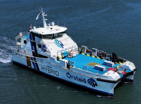 丹麥高性能混動風電運維船,代表著沃爾沃遍達在混動市場的推廣情況及對未來清潔能源解決方案的展望。船舶為混動電力推進,船上安裝了四臺IPS30推進器, 兩臺D13-700推進主機,5臺D8發(fā)電機組以及一臺D5發(fā)電機組。此設計方案在重量,空間占用及節(jié)能減排方面均有明顯優(yōu)勢,有利于海上風電行業(yè)環(huán)保性和燃油經(jīng)濟性。